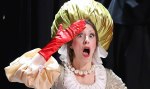 Sowohl auf Makkaroni als auch auf weibliche Reize hat hier die Hauptfigur, der Herzog von Urbino (Vincent Schirrmacher) Appetit. Schirrmacher im futuristisch anmutenden Kostüm mit runden Brillen legt die Rolle locker an, stimmlich ist er gut vorbereitet. Für die Makkaroni des Abends, frisch gekocht, sorgt Pappacoda (Michael C. Havlicek), der gerne Leibkoch des Herzogs werden würde. Fast würde man meinen, Pappacoda koche neuerdings mit Zahnlücke, aber immer noch mit viel amore. Auch Havlicek sorgt stimmtechnisch gesehen für Harmonie, das Kostüm ist mit Querstreifen schon gewöhnungsbedürftig. Bis er seine Ciboletta (Johanna Arrouas), die nicht gerade mit dem Höchstmaß an Intelligenz gesegnet ist, in die Arme schließen kann, vergeht einige Zeit. Diese vertreiben sich inzwischen Caramello, der Leibbarbier des Herzogs (Jörg Schneider) und Annina (Mara Mastalir). An beiden ist in punkto Darstellung und Stimme nichts auszusetzen. Die drei Senatoren Delaqua, Barbaruccio und Testaccio (Wolfgang Hübsch, Franz Suhrada und Gerhard Ernst) möchten ihre Gattinnen vor dem Schlimmsten, nämlich der Schmachterei des Herzogs, bewahren. Das bewerkstelligen sie mit Getöse und komisch anmutenden, weißen Perücken. Und sie kämpfen um eine gute Stelle beim Herzog. Was an sich ja nett ist. Die drei Herren verleihen der soliden Operette ein wenig mehr Biss, doch ganz reicht das nicht. Es ist eine brave, allzu klamaukhafte Produktion. Solider Gesang und ein motiviertes Orchester, sensibel geführt von Alfred Eschwé, fügen sich ein.