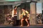 Eben hier spielt man Mozarts „Zauberflöte“ in der Regie von Nina Sengstschmid. Hier ist nicht der Platz für ein großes, opulentes Bühnenbild, das die Dimensionen sprengt. Umgesetzt wurde die Idee dennoch streckenweise hübsch von Doroteya Petrova. Die eigentlich riesige Schlange, die Tamino gleich zu Beginn verfolgt, entpuppt sich als liebes, kleines „Dracherl“, das im Schattenspiel (hinter einer über der Bühne hängenden Stoffwand) sein Unwesen treibt. Sergio Tallo Torres als Tamino kann beides im Mittelmaß: Spielen und Singen. Er zeigt zwar Interesse an Pamina, kann den Funken aber nicht so wirklich überspringen lassen. Die Pamina von Anna-Sophie Kostal (stets barfuß) ist bemüht und kraftvoll. Besonders mit dem ihr anvertrauten Dolch geht sie vorsichtig um, aber dann auch wieder unwirsch. Daher zeigt sie Emotionalität im Spiel. Marco Ascani als Papageno hat einen rasanten Auftritt, interessanterweise spricht er mit leicht französischem Akzent. Manche Töne verirren sich bei ihm noch. Schauspielerisch ist da ebenfalls noch Potential vorhanden. Bei der Premiere gibt es ein kleines Malheur: Papagenos Glockenspiel fällt schon von selbst von der Ballustrade, während Taminos Zauberflöte brav von ihm abgeseilt wird. Die Sänger nahmen es mit Humor. Papagena (Annina Künzi) findet erst nach einer langen Durststrecke zu ihrem Auftritt. Der fällt umso fröhlicher aus. Echte Bühnenküsse sind in der Produktion keine Seltenheit. Die drei Damen (Cathrin Chytil, Katrin Kriegl und Celia Sotomayor) spielen brav und aufgeregt. Stimmlich sind allerdings Unterschiede auszumachen. Obwohl hier viel Potential vorhanden wäre, wird es leider nicht gänzlich ausgeschöpft. Chytil als erste Dame wirkt hier sehr dominant. Die anderen beiden Damen kommen ihr nicht hinterher. Einen wuchtigen Auftritt liefert Dominik Söns als Monostatos. Richtig böse und zähnefletschend, scheint dem jungen Sänger die Rolle sehr zu gefallen. Max Sahliger betört mit seinem Bass. Als Sarastro spielt er einiges an Können aus, wirkt oftmals väterlich und statisch. Eine tragende Rolle verkörpert auf jeden Fall Miki Sasakawa. Sie ist die Königin der Nacht und bringt ihre Koloraturen zu einer beachtlichen Leichtigkeit. Eine gestrenge Mutter.