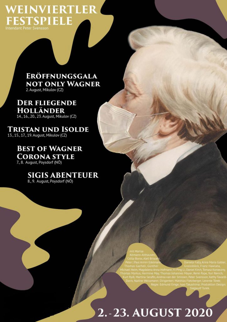 Eröffnet werden die Festspiele mit einem Galakonzert „Not only Wagner“ im August in Mikulov. Fünf Kilometer von der österreichischen Grenze entfernt werden beim Konzert bekannte SängerInnen wie Tomasz Konieczny, Sebastian Holecek, Thomas Weinhappel, Daniela Fally, Franz Hawlata, Peter Edelmann, Valentina Nafornita, Michael Heim und Kurt Rydl auftreten. Dies kommt der „Corona SängerInnen Nothilfe“ zu Gute.